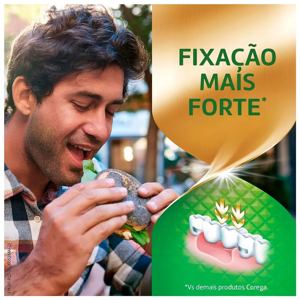 O Ultra Corega Creme é um fixador de prótese que atua o dia todo* proporcionando uma fixação mais forte** além de bloquear até 5X mais as partículas de alimento*** .O Corega fixador de próteses dentárias forma uma barreira confortável que veda uniformemente e completamente a superfície da prótese, ajudando a bloquear a entrada de alimentos entre a dentadura e a gengiva que causam desconforto.O Ultra Corega proporciona uma fixação prolongada* com confiança conforto para o usuário falar, sorrir e comer. O bico de precisão facilita a aplicação e proporciona uma fixação durante o dia todo*.Ele fixa sua prótese em 3 direções para que você não se preocupar ao mastigar além de ajudar na adaptação de novas próteses. Corega é a marca nº 1 do mundo em cuidados com a prótese dentária¹ e N°1 em recomendação dos dentistas².